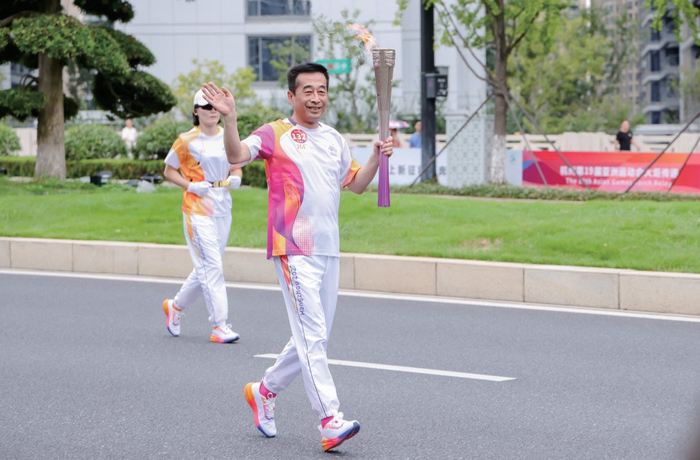 9月20日,杭州第19届亚运会火炬回到杭州,开启最后一站传递。在充满良渚文化气息的“锦绣繁华新天堂线”上,伊利集团高级执行总裁张剑秋作为亚运火炬手,参与并顺利完成了第132棒的火炬传递。