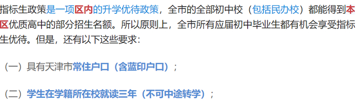 也就是说,外地人去参加天津高考,除非小升初直接过去,否则没有指标生资格。