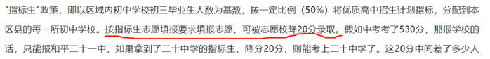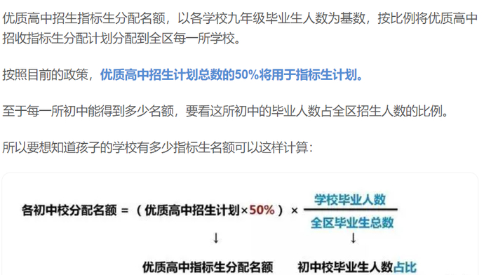 比如天津的政策是优质高中招生计划总数的50%将用于指标生计划。