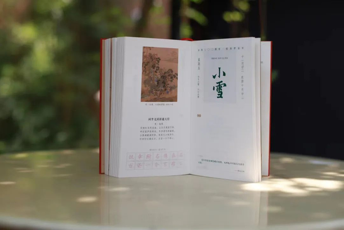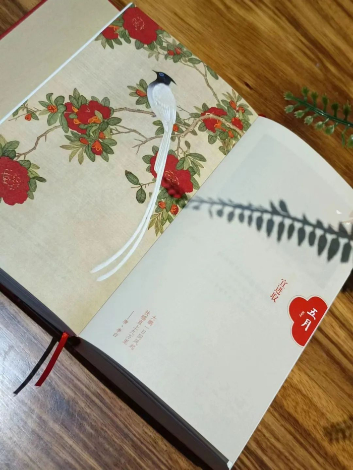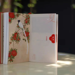 110mm*185mm的尺寸,大小如明信片一般,小巧便携;还可以180°视野平铺,阅读体验超好。内文排版舒朗大气,日期、节气等实用的信息一目了然。