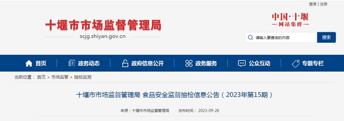 湖北省十堰市市场监管局发布食品安全监督抽检信息(2023年第15期)