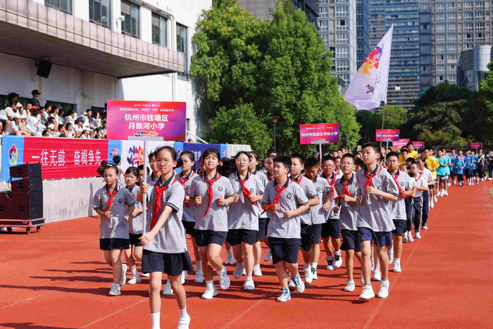 围绕亚运会,杭州市的青少年体育赛事活动也进行得如火如荼。近日,潮涌钱塘“奔跑吧·少年”体育嘉年华活动暨钱塘区“365健康跑”活动在杭州举行。来自全省J12(浙江省初中提质强校共同体)学校、钱塘区20所学校的千余名学生一起参与了跑步、跳绳、篮球、毽球等体育活动,以实际行动迎接杭州亚运会的到来。为了激发学生的体育热忱,活动还邀请到2020年东京奥运会体操女子平衡木冠军管辰晨为学生领跑。她还和老师、学生代表一起发出倡议书,共同倡议广大青少年进一步树立健康第一的理念。活动现场还设置了斗舞、颠球、短跑、跳绳、投篮等多元化的比赛项目,学生们全情投入,在各项比赛中充分感受体育的快乐和激情。