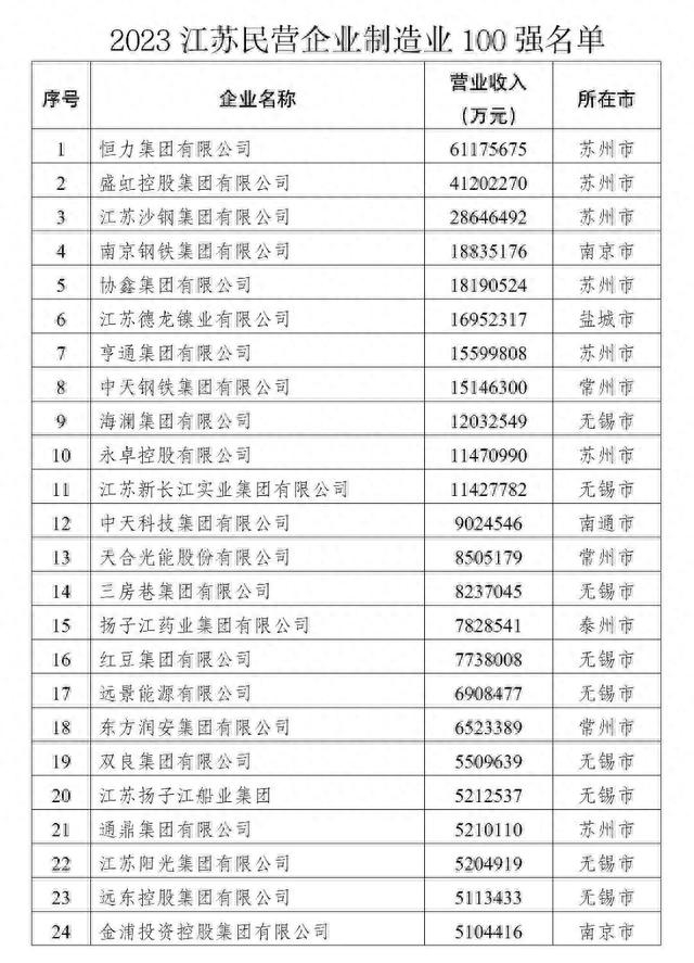 (无锡市入围2023江苏民营企业制造业100强名单)