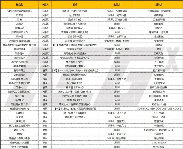 相较于去年的国创发布会的49部作品,今年的作品数量更多,且作品来源依然丰富。