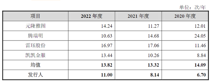 中奥通宇与可比企业的存货周转率比较如下图所示: