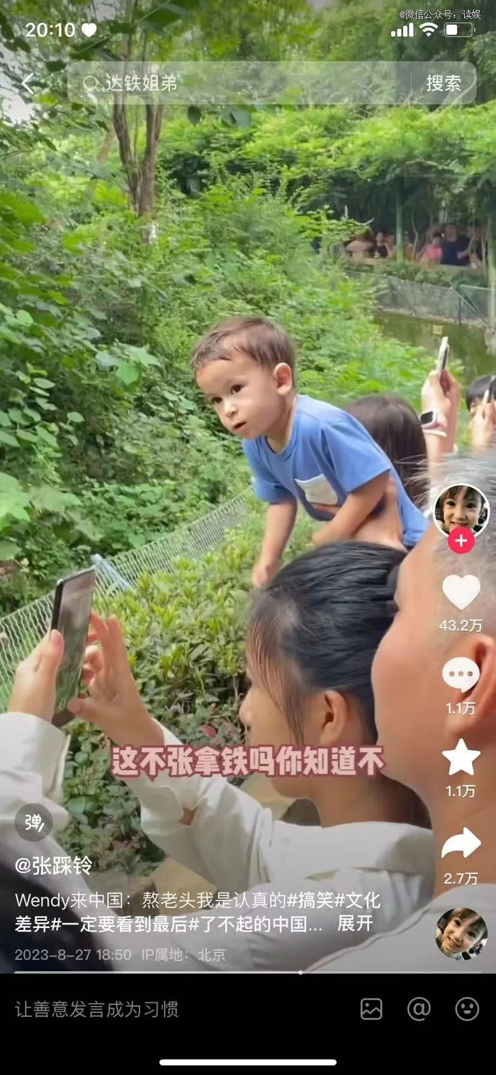 最后,明星、网红观赏大熊猫已是常态化的存在,他们在社交平台分享观看熊猫的心得,其内容所引发的名人效应,助力扩大熊猫粉丝的基本盘。早前,张踩玲一家四口以志愿者的身份近距离接触大熊猫,大胖媳妇以直播的形式呈现给海外的亲朋好友,而此番张踩玲的婆婆小姑子来到中国,到成都看熊猫亦是必不可少的一站,相关的视频有43w+点赞。前有张踩铃一家集体打卡,后有蔡依林看演唱会式拍熊猫,这些名人向内容为熊猫带来了更多的关注与流量。