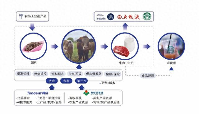 譬如,2022年12月至今,腾讯集团与新希望集团共同发起提高动物福利的牛只节粮公益性研发项目,其中腾讯云与新希望·新腾数致团队,将数字科技与畜牧科技结合,通过大数据和AI技术加速创新的节粮配方研发、推广和追踪的服务平台——“动物福利云服务平台”。