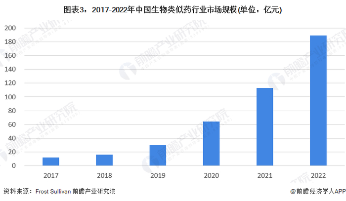 2022年中国生物类似药行业市场规模约为189亿元