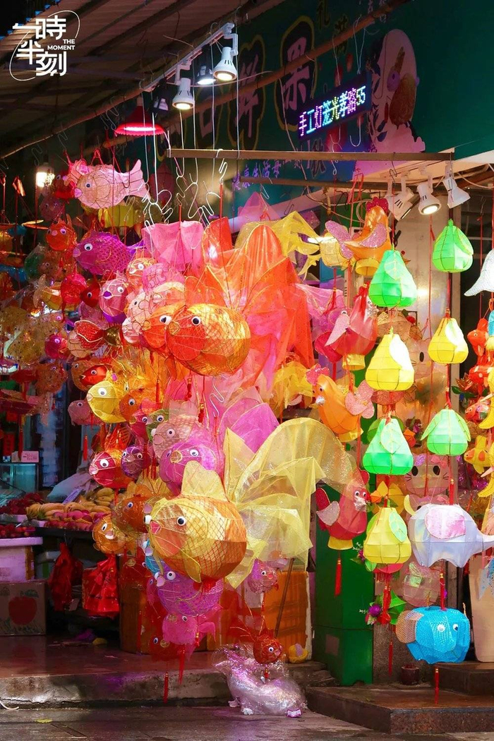 和东莞做工讲究、彰显传统的灯笼仔相比,广州的灯笼更像一场造型各异的“颜色赛场”。款式之多,颜色艳丽,如同万盏流萤舞动环绕身旁。
