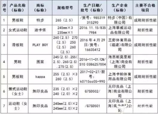 此外,特步还在2017年被上海市质监局检测出货号为985319的男板鞋“成鞋耐折性能”不合格。