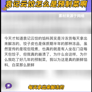 袁记云饺亦是,主打一个现包现煮,虽然真的有人每天坐在店里包云饺,但实际上材料都是在广东制作完成,冷冻发到各地(馅料同皮都是中央厨房配送,皮的保质期约2个月,肉馅约半年),解冻包好再卖出,至于解冻材料的环节自然是回避了食客们的。