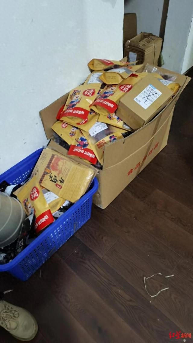 在施某某夫妇租的房屋内,堆满了各种各样的原材料,其中一间屋子放着电脑,负责在网上售卖包装好的“牛肉干”,另外两间则是原料仓库和包装好的成品仓库,而他们的包装过程则在客厅里进行。将已经腌制好的猪肉干、鸭肉干用闸刀进行裁剪,然后用牛肉干包装袋进行封装,如此轻易便完成了造假,可谓是毫无技术含量。