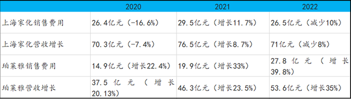 上海家化和珀莱雅销售费用和营业收入对比