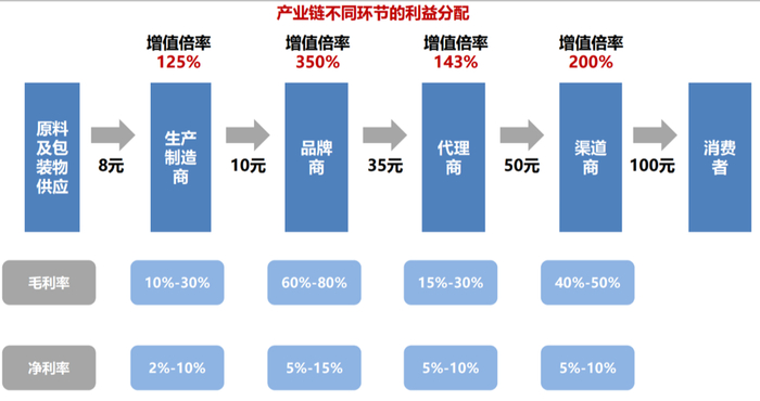 但实际上,目前高昂的化妆品生产成本只占总成本很小一部分,大部分成本都是出自销售费用。说到底,高价的化妆品,更多的是贵在了品牌溢价、营销和销售上面。可以这么说,成功的美妆企业必定是会营销的企业。