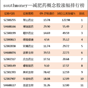 减肥药概念股排行榜|减肥药板块涨幅居前,关注这些股票!