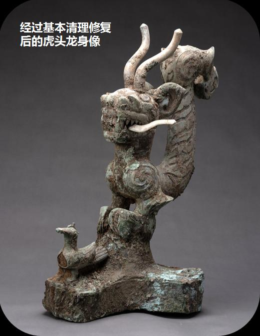 拼对成功!三星堆又有新发现:虎头龙身青铜像“装上”尾巴太美了