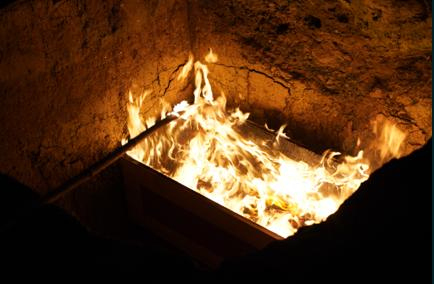 当然,焚烧的不是原件而是“高仿”。“这个木箱是黄连木材质的,因为黄连木不容易找到,前期的实验就先用松木和香樟木制作了同尺寸的木箱。”黎海超介绍说,“我们分别采用坑内焚烧和坑外焚烧两种方式。目前初步结果表明:1.朱砂遇火则难以保存;2.在明火焚烧状态下,木箱难以形成碳化而结构完整的状态。”