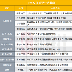 爱柯迪公告,9月初,依据公司已获得的项目定点函或与客户已签订项目开发协议等资料,公司新能源汽车零部件铝合金产品在手订单金额超过250亿元,该等获取订单主要集中在未来4~7年内实现销售收入。