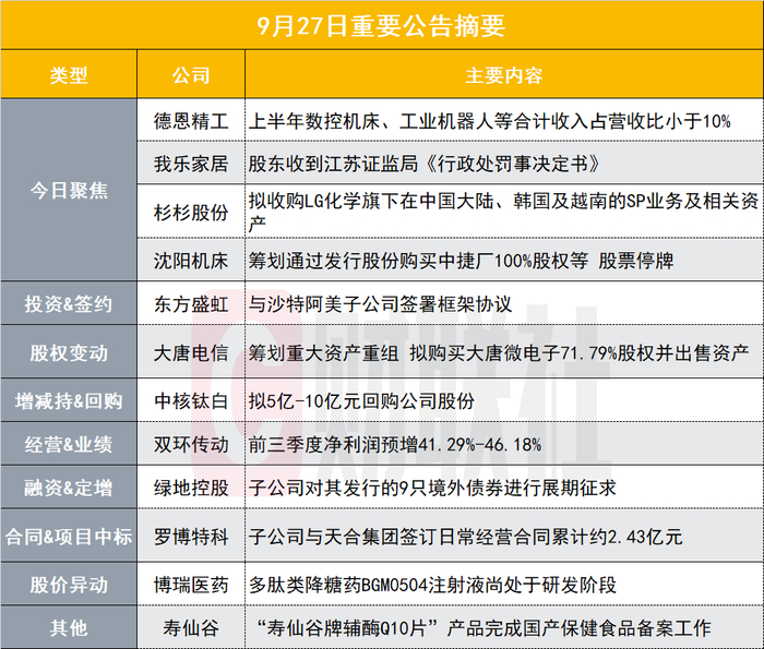 我乐家居公告,股东于范易及其一致行动人因涉嫌超比例减持,收到江苏证监局《行政处罚事决定书》,对于范易、烟台埃维商贸有限公司、西藏埃维创业投资有限公司、烟台埃维管业有限公司责令改正,给予警告,没收违法所得1653万元,并处罚款3295万元。