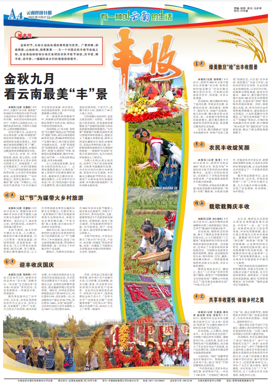 金秋时节,云岭大地处处涌动着希望与欢笑。广袤田畴,稻菽飘香;山地林间,硕果累累……又一个中国农民丰收节来临之际,全省各地纷纷举办各式各样的农民丰收节活动,庆丰收、晒丰收、话丰收,一幅幅和美乡村的画卷徐徐展开。