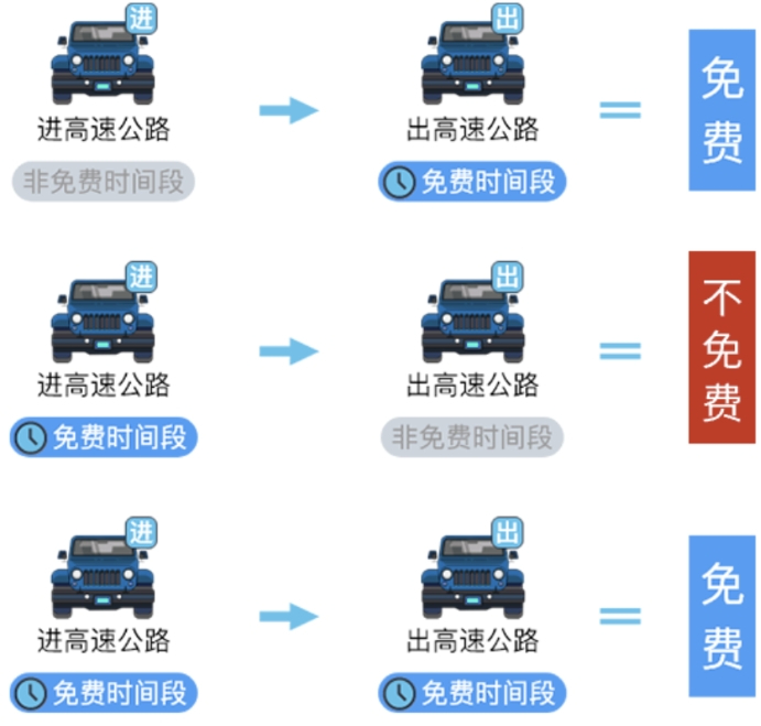 无论是否在免费时段驶入高速,只要在免费时段内驶出高速,都不会收取通行费,但超过免费时段下高速,则会被收取全程费用。取消高速公路省界收费站后,跨省车辆通行计费里程较长,建议大家在免费时段结束前提前驶出高速,再重新驶入,确保前段行程享受免费。避免因道路拥堵、路线不熟等其他原因错过免费时段,导致缴纳较高的全程费用。
