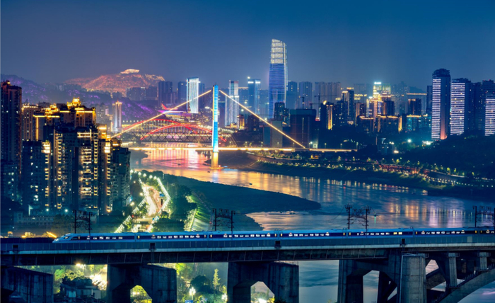 动车组列车从宜宾市内穿城而过