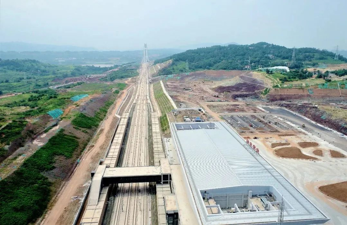 渝昆高铁全长699公里,共规划设置21座车站,设计时速350公里。目前,渝昆高铁川渝段全面进入铺轨阶段。