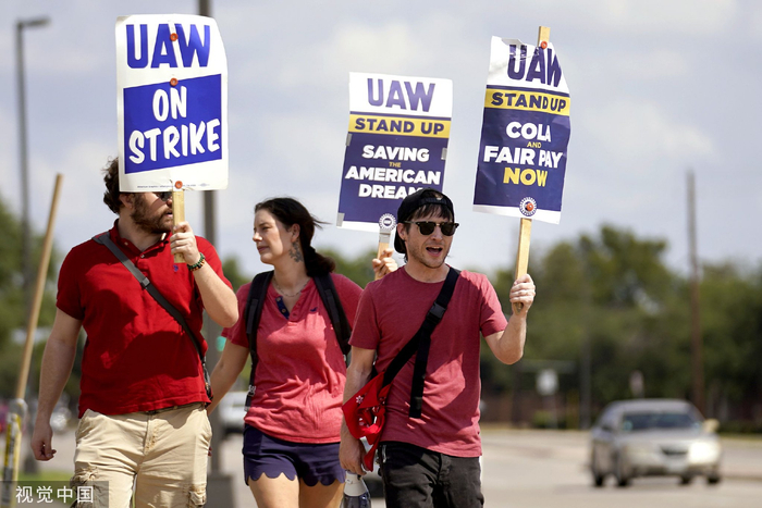罢工带来的影响已经波及到其他工厂。通用汽车在上周表示,由于罢工导致零部件短缺,该公司被迫关闭堪萨斯州汽车工厂,导致当地2000名工人暂时休假。Stellantis上周则在俄亥俄州暂时解雇了68名员工,并预计将在印第安纳州解雇300名员工。