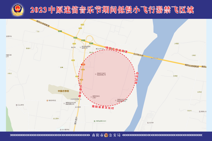 二、禁飞区域:南阳北绕城高速以南,南阳盆景文化村以北,孔明路以东(含本路),白河沿岸以西空域。