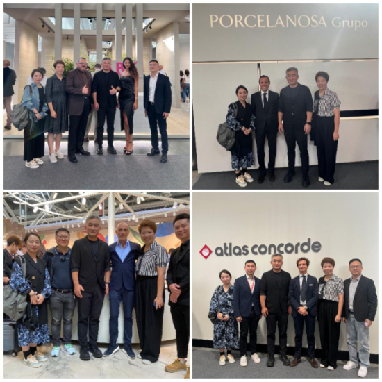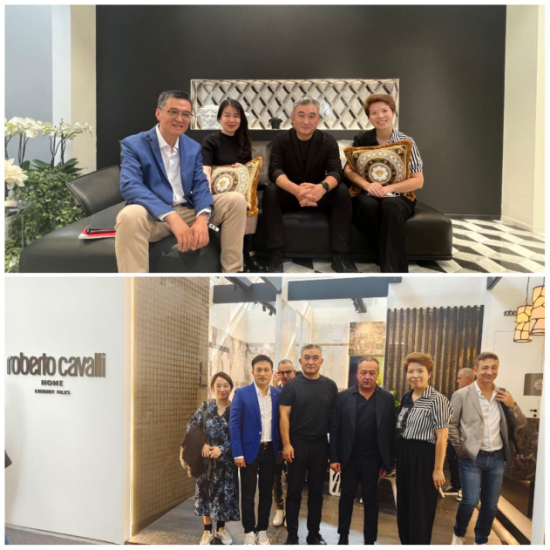 随后,朱家桂率团队深入展会现场,密集走访了众多国际头部瓷砖品牌,包括ABK、atlas concorde、COEM(意美家)、DPI 、DEL CONCA (艺奢汇)、GARDENIA、HOMEurope(家欧洲)、MARAZZI 、Neolith(德赛斯)、PORCELANOSA(宝瓷兰)、IMOLA 、Iris(奥卓斯) 、roberto cavalli 、SUPERGRES、Versace等,深度交流国际标杆瓷砖品牌近几年在全球市场的发展状况,调研今年新品及创新科技,把握世界瓷砖潮流趋势,洞察全球消费市场变化,共创未来在中国市场的业务拓展方向。