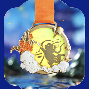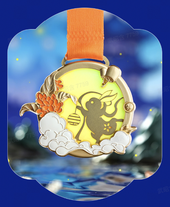 中秋节,又称拜月节、团圆节,是中国民间传统节日。《月影中秋》赛事的奖牌以“玉兔捣药”与“嫦娥奔月”为主题元素,整体造型为月桂白云环绕,玉兔提着灯笼飞到天宫去,月亮背景色的夜光颜料让奖牌在黑暗中呈现荧光色,更显月夜氛围。本次赛事设置了3km、5km、8.15km及21km多个挑战里程,可覆盖运动能力不同用户的多元需求,其中8.15km为中秋节纪念公里数。