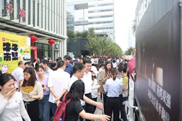 9月26日上午10点,牛牛市集还未正式开始,现场就已经人头攒动了。中午12点,每个摊位前都挤满了人,市民们在市集中品尝网红美食,购买特色文创,体验游戏乐趣, 欣赏开心麻花表演……
