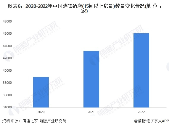 根据酒店之家数据显示,2020-2022年中国连锁酒店数量呈上升趋势,2022年中国连锁酒店数量(15间以上房量)约4.6万家。
