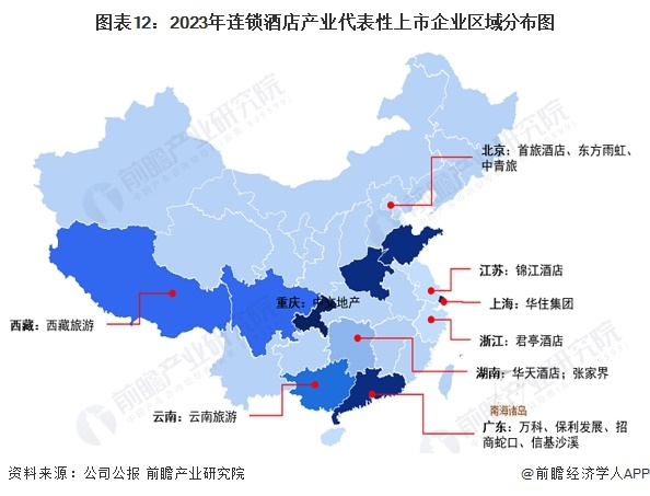 从代表性企业分布情况来看,我国连锁酒店代表企业分布在北京、江苏、上海、浙江、广东等沿海省市,以及云南、西藏、重庆等旅游热点省份。