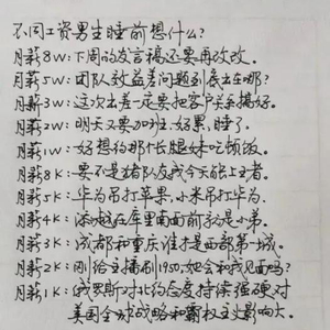 图片内容很有意思,说的是“不同工资男生睡前想什么?”
