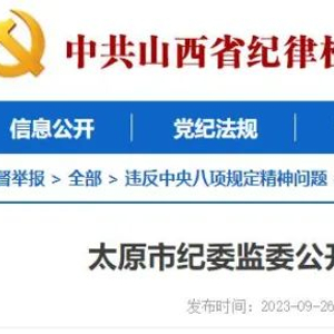 2023年中秋、国庆节假将至,为进一步严明纪律规矩、强化警示教育,持续培树新风正气,营造风清气正的节日氛围,近日,太原市纪委监委对3起违反中央八项规定精神典型问题进行公开通报。具体如下:
