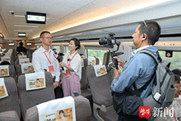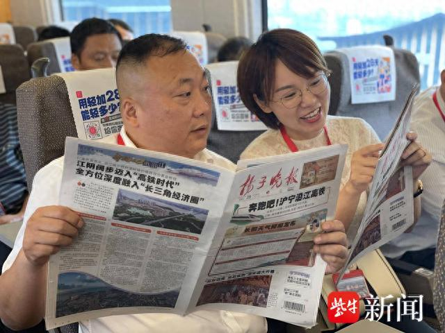 当天上午,扬子晚报联合句容市融媒体中心、金坛区融媒体中心、武进区融媒体中心、江阴市融媒体中心、张家港市融媒体中心、常熟市委宣传部以及太仓市融媒体中心,乘着沪宁沿江高铁驶往沪、宁方向的两趟首发列车,以 1+7式联合直播,与50多万网友一起沉浸式体验沪宁沿江高铁的尝鲜之旅。