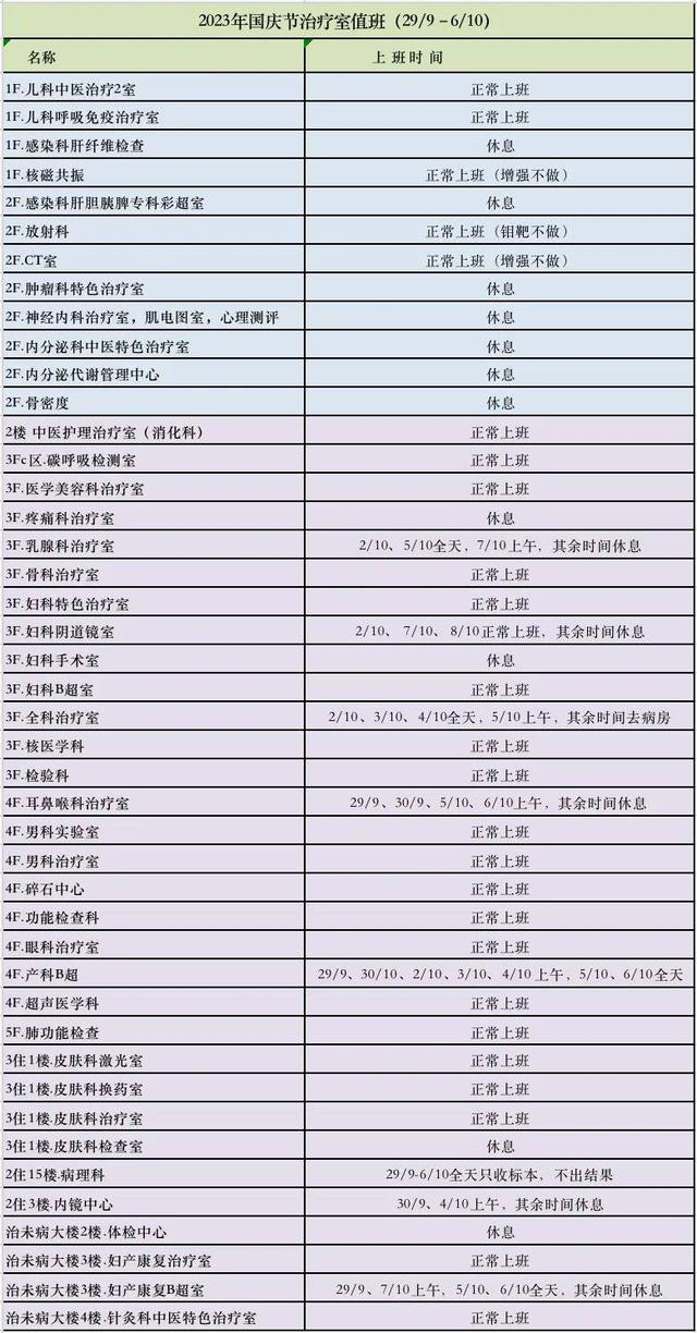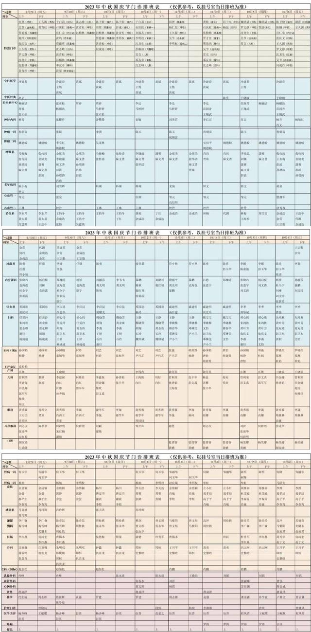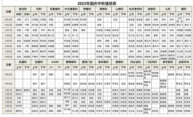 2023年中秋节、国庆节(9月29——10月6日)门诊各科室均正常出诊。