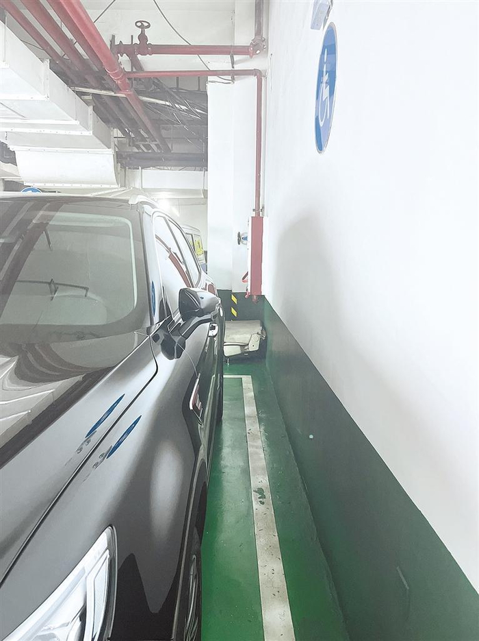 南国花锦购物中心的无障碍停车位,驾驶室一侧靠墙。