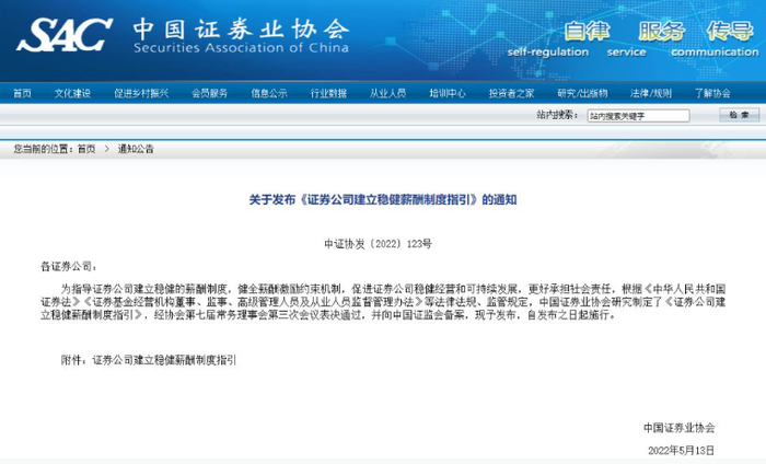 2022年5月13日,中国证券业协会正式发布《证券公司建立稳健薪酬制度指引》。该文件明确:证券公司在制定薪酬制度时,应当建立严格的问责机制增强薪酬管理的约束力,包括但不限于奖金、津贴等薪酬止付、追索与扣回等内容,对违法违规或导致公司有过度风险敞口的高管和关键岗位等相关责任人员追究内部经济责任。