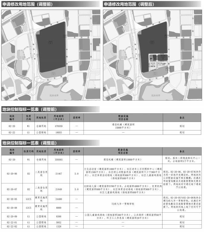 详见调整前后地块规划控制指标一览表及附图。