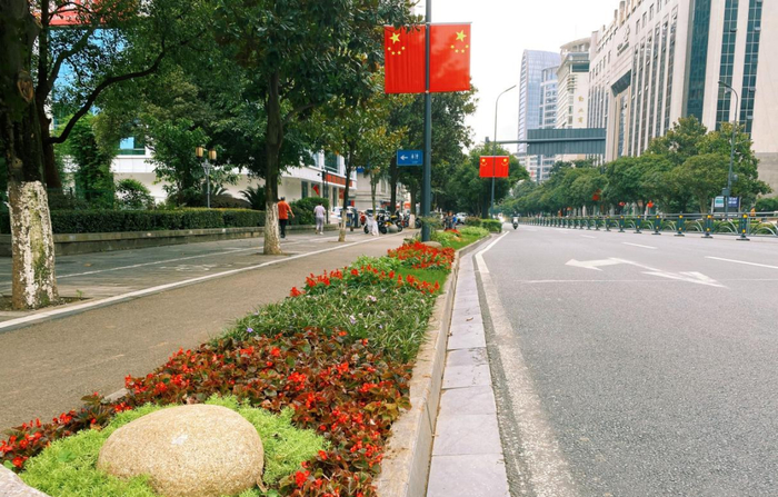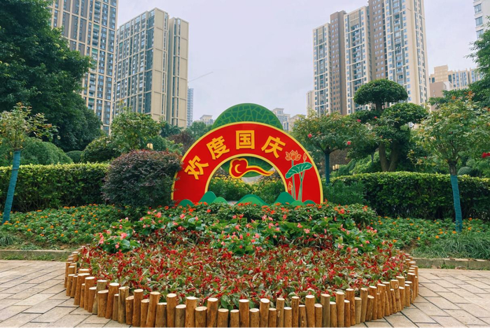 大街小巷迎风飘扬着的五星红旗,马路街头随处可见的锦簇花团,无不向人们宣告着——国庆节和中秋节就要来啦,而在城区重要节点和主次干道现身的园林扎景和组景更烘托了这热闹喜庆的节日氛围。