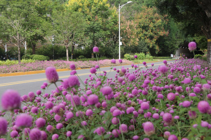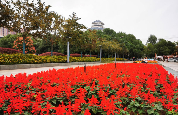 一串红、孔雀草、鸡冠花等时令花卉绽放在胜利四路、沿江大道、城东大道等城区主次干道上,为初秋这个季节染上了一抹明亮鲜艳的色彩。
