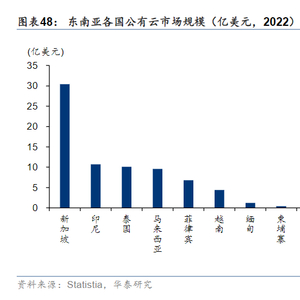 需要指出的是,阿里云、华为云、腾讯云等还在快速扩展阶段。其中,阿里云最早布局东南亚区域,经过多年深耕,阿里云在东南亚地区的营收及市场份额持续提升,据Gartner,2021年阿里云在马来西亚的市场份额占比达到29.2%,在印尼市场份额则达到22.9%,成为支撑起增长的重要引擎之一。