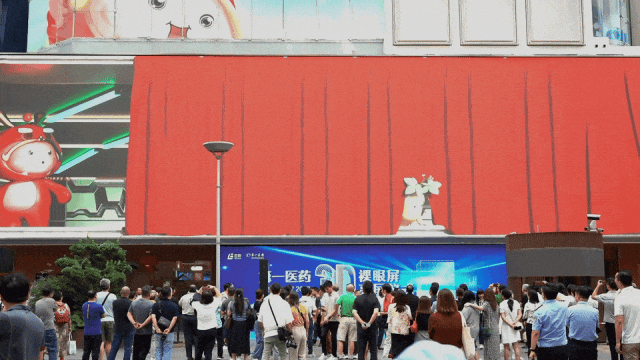 原来,在第一医药商店的楼梯外墙上,一个巨大的3D裸眼屏占据了整整三层楼面。屏幕点亮后,以磅礴的气势和酷炫、生动、立体的展示方式,提升整个区域的科技感和时尚感。