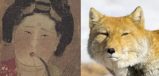 左图唐代张萱款《宫乐图》中美人,右图藏狐。