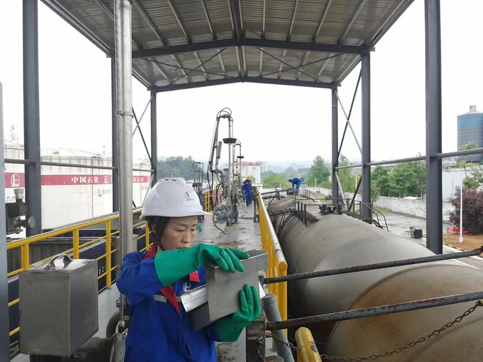 何琴是中国石化恩施铁路油库综合班班长,也是一名质检员。从2018年到铁路油库工作后,每年双节经她的手检测的成品油检测次数超320多次,从未发生一起差错。每年“双节”何琴每天的作业时间从清晨6点开始,成品油入库时她要爬上火车槽车顶部提取样品,成品油出库时她要攀登六十多阶铁梯,在13米高的油罐上提取样品,日复一日,年复一年。作为一名质检员,何琴要把好油品的入库关和出库关,确保油品质量合格。