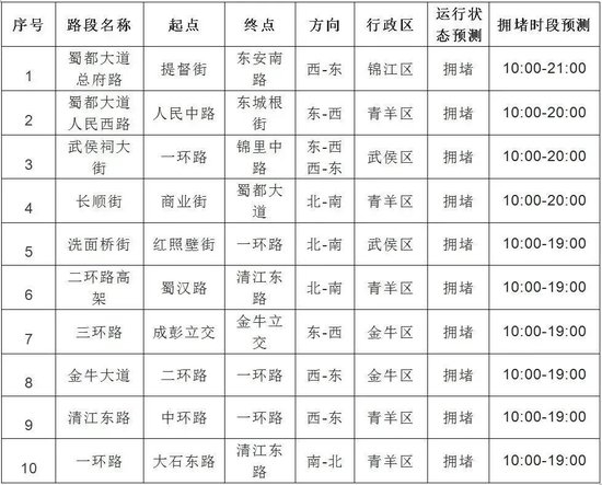 出行高峰期间,预计双流机场、成都东站周边道路运行压力较大。