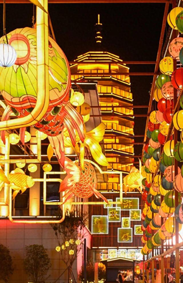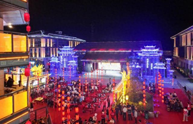 现场鲜艳的国旗、火红的灯笼、璀璨的鱼龙灯组、震撼的“宋风雅韵”街景……灯中有景、景中映词,火树银花、流光溢彩、热闹非凡,千余名游客与群众齐聚一堂,登神鱼谣塔望月赏月,边吃火锅,边欣赏餐秀夜演,渔湾火锅宴里话团圆,欢欢喜喜闹中秋。