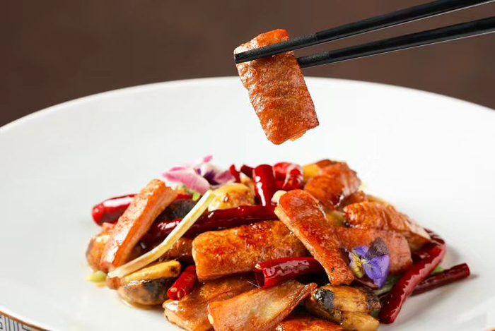 头图:上海老饭店秋季新品-白葱牛肝菌辣炒脆肠头。豫园文化饮食集团供图